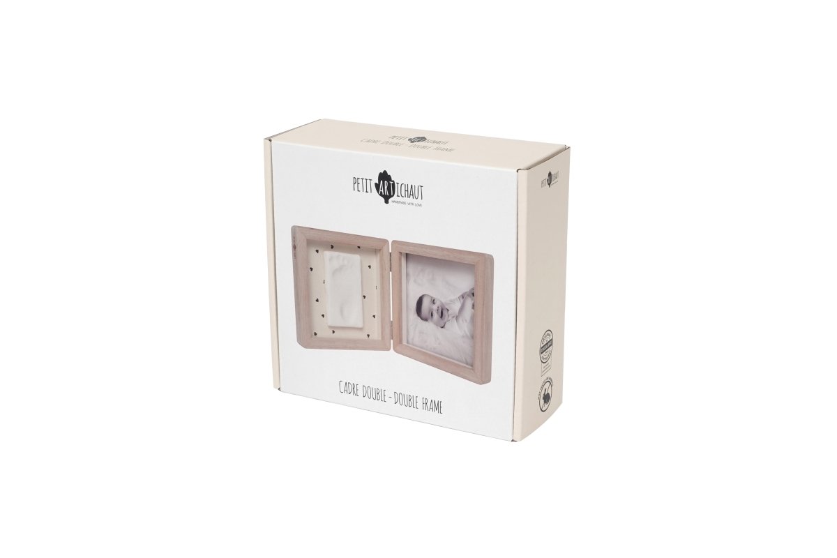 Capture two of life’s sweetest treasures, your baby’s tiny imprint and a favorite photo, in the Duo Frame – Pretty Hearts. Designed as a standing frame, it brings a heartfelt charm to any nursery, living room, or family space. With its reversible beige background, choose between a simple look or a playful heart pattern to match your style.